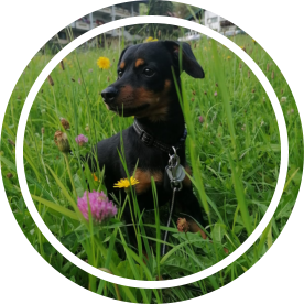 Er begrüßt alle Gäste mit seinem Bellen und hofft auf streicheleinheiten.